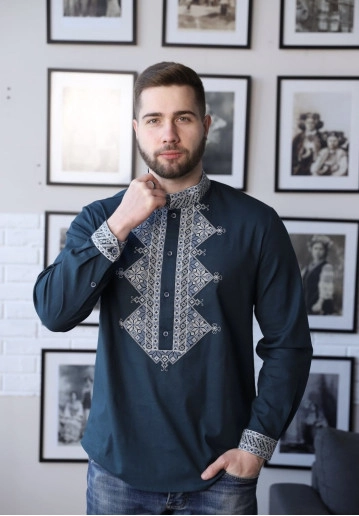 Вишиванка чоловіча Залісся (чорна з молочним)