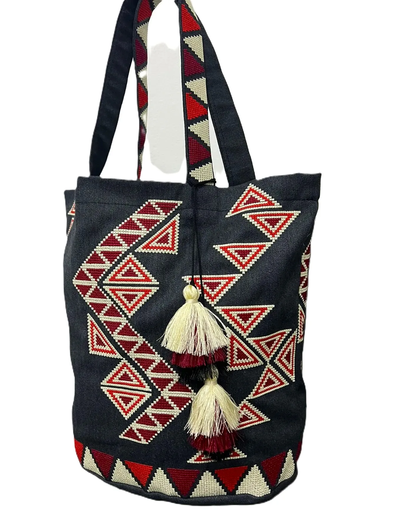Torby z haftem trupilska mozaika (czarny z wiśnią)