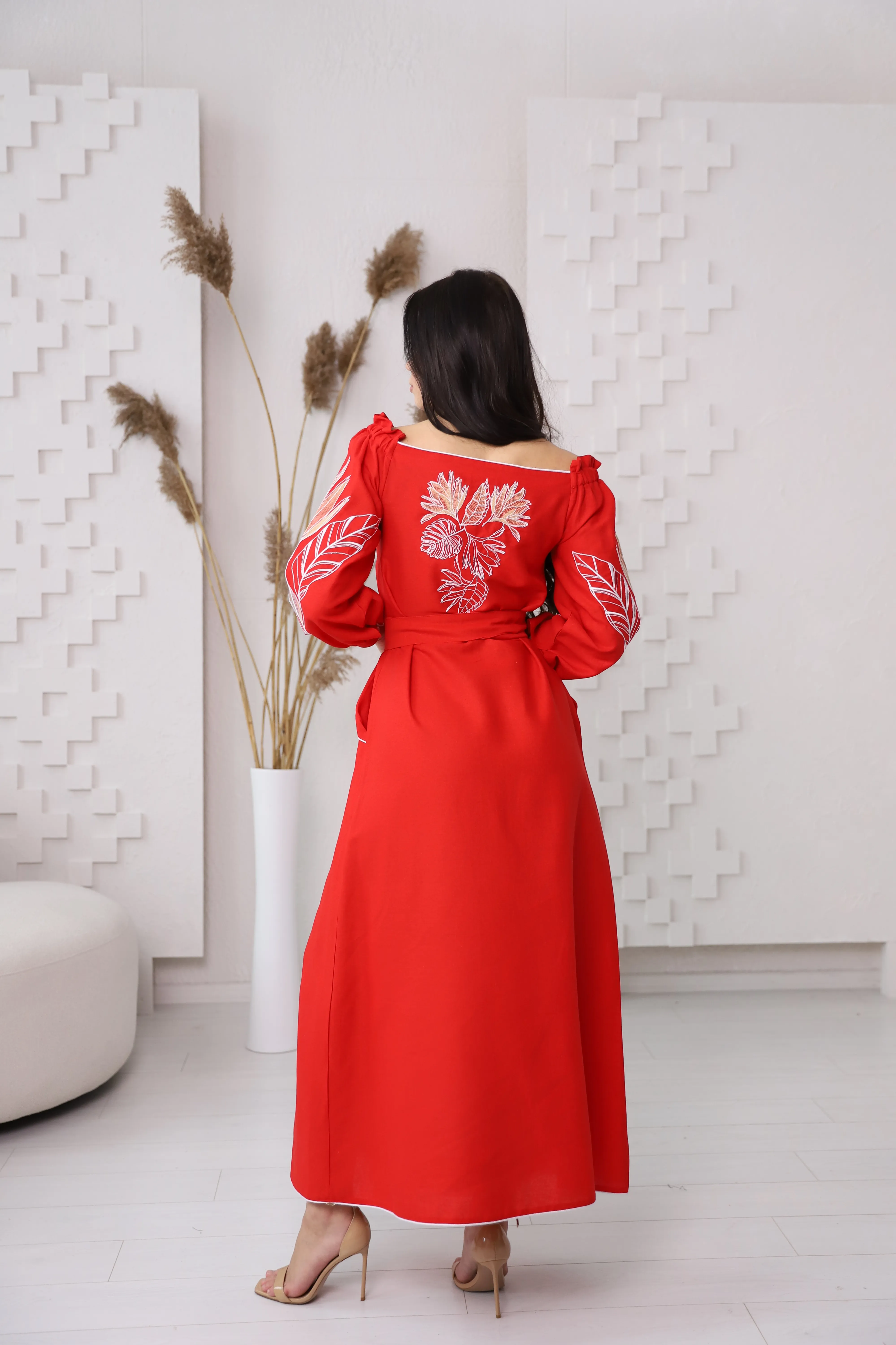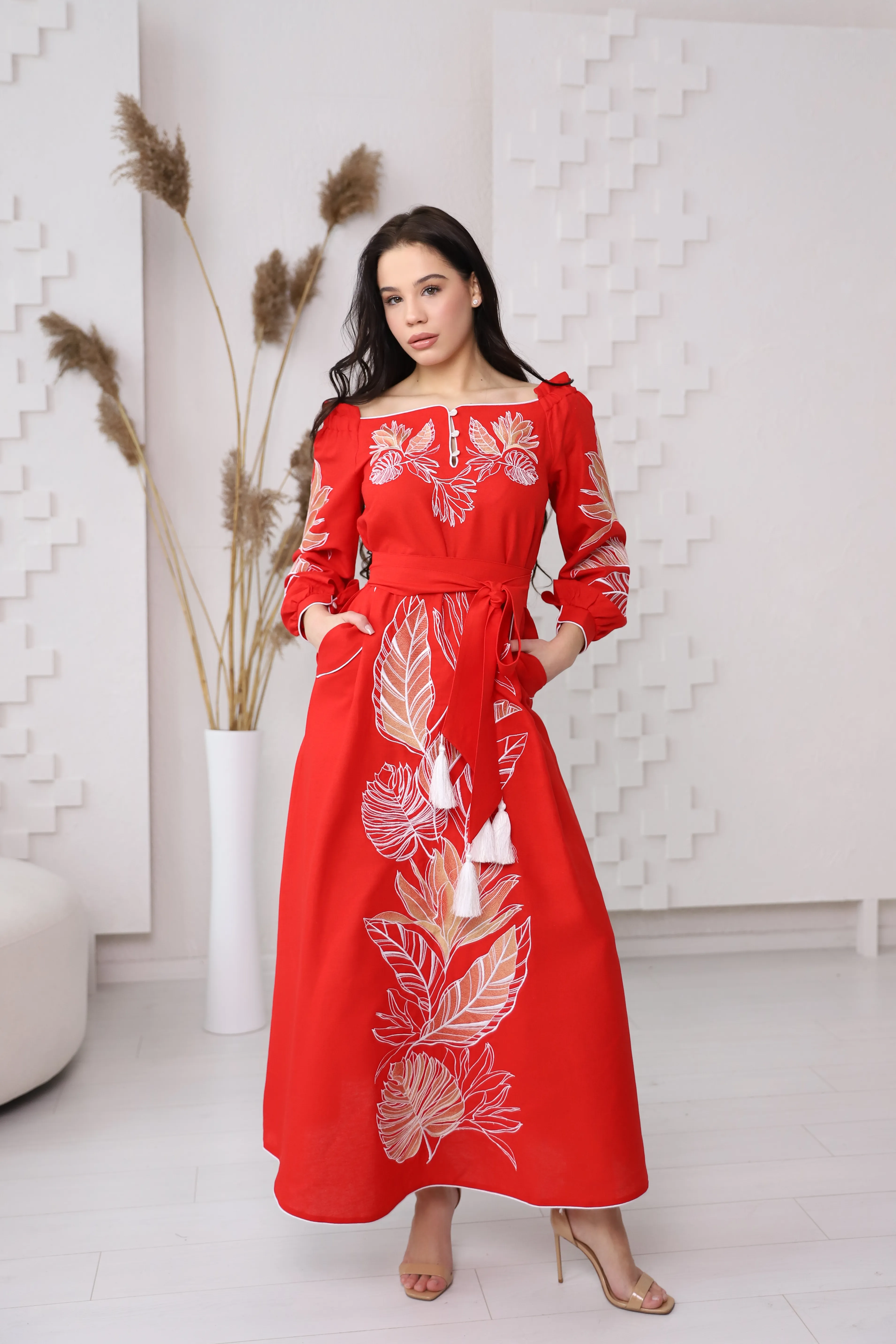 Вышитое платье Княжна (красная)