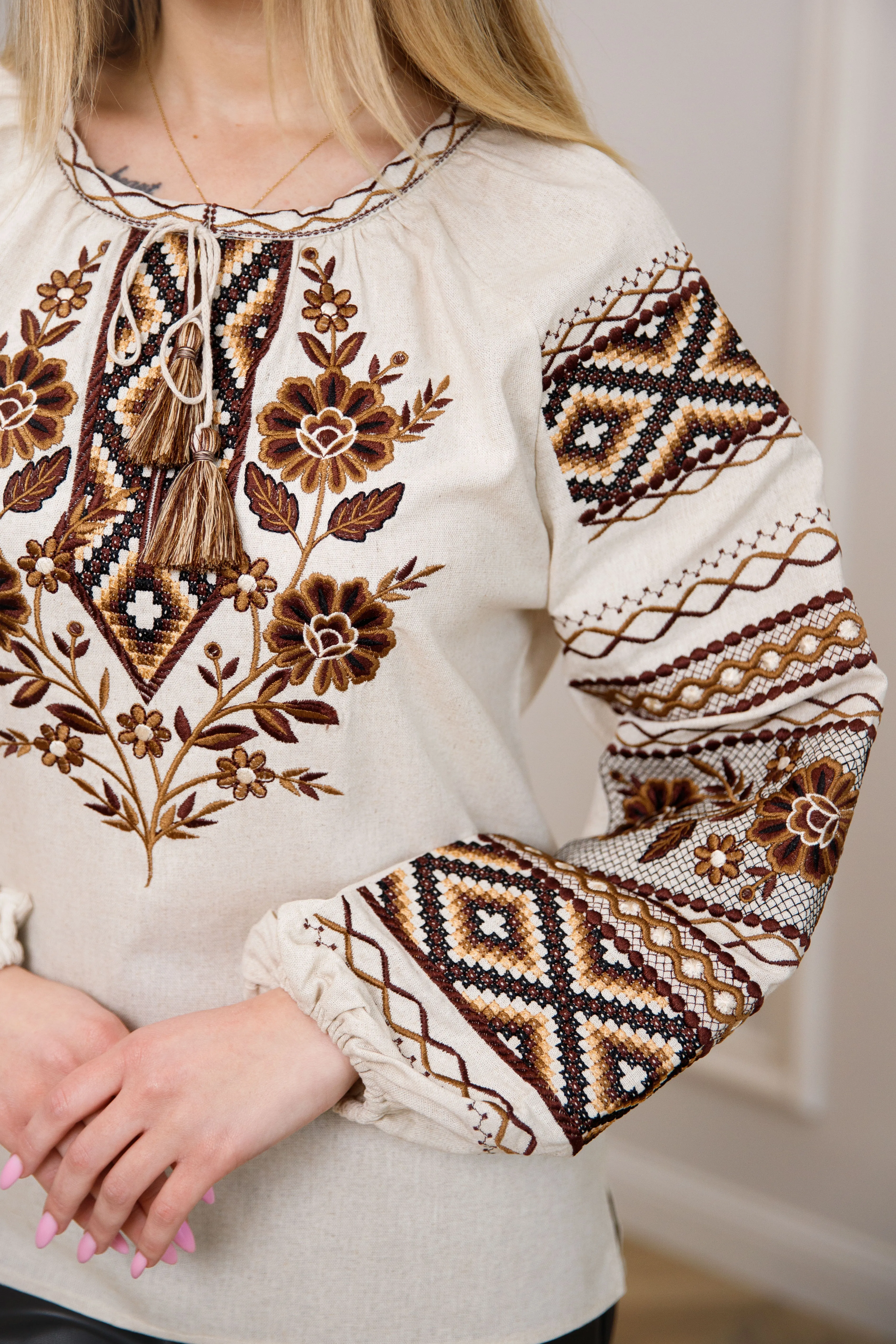 Вишиванка жіноча Ясміна (беж-меланж з коричневим)