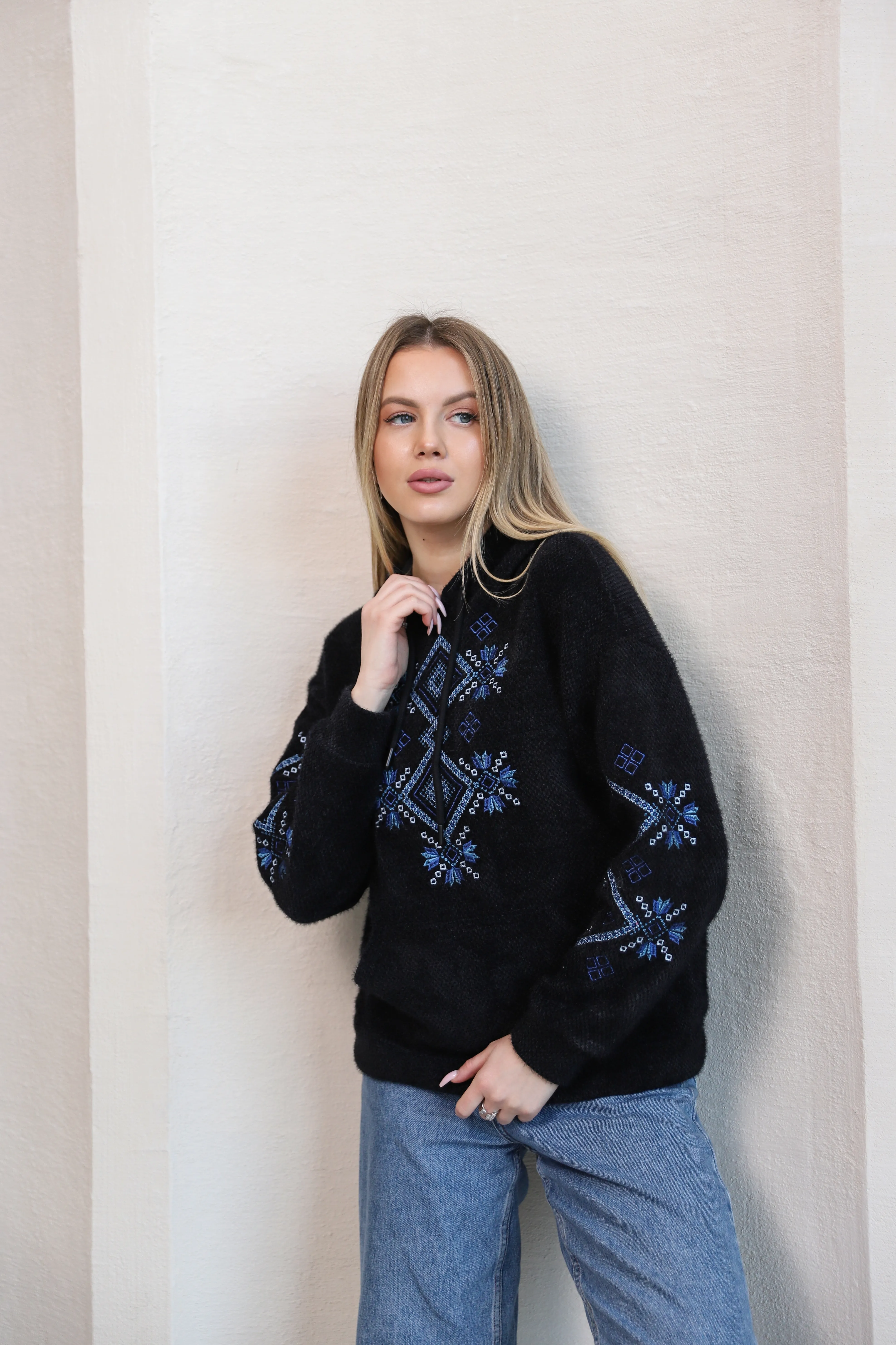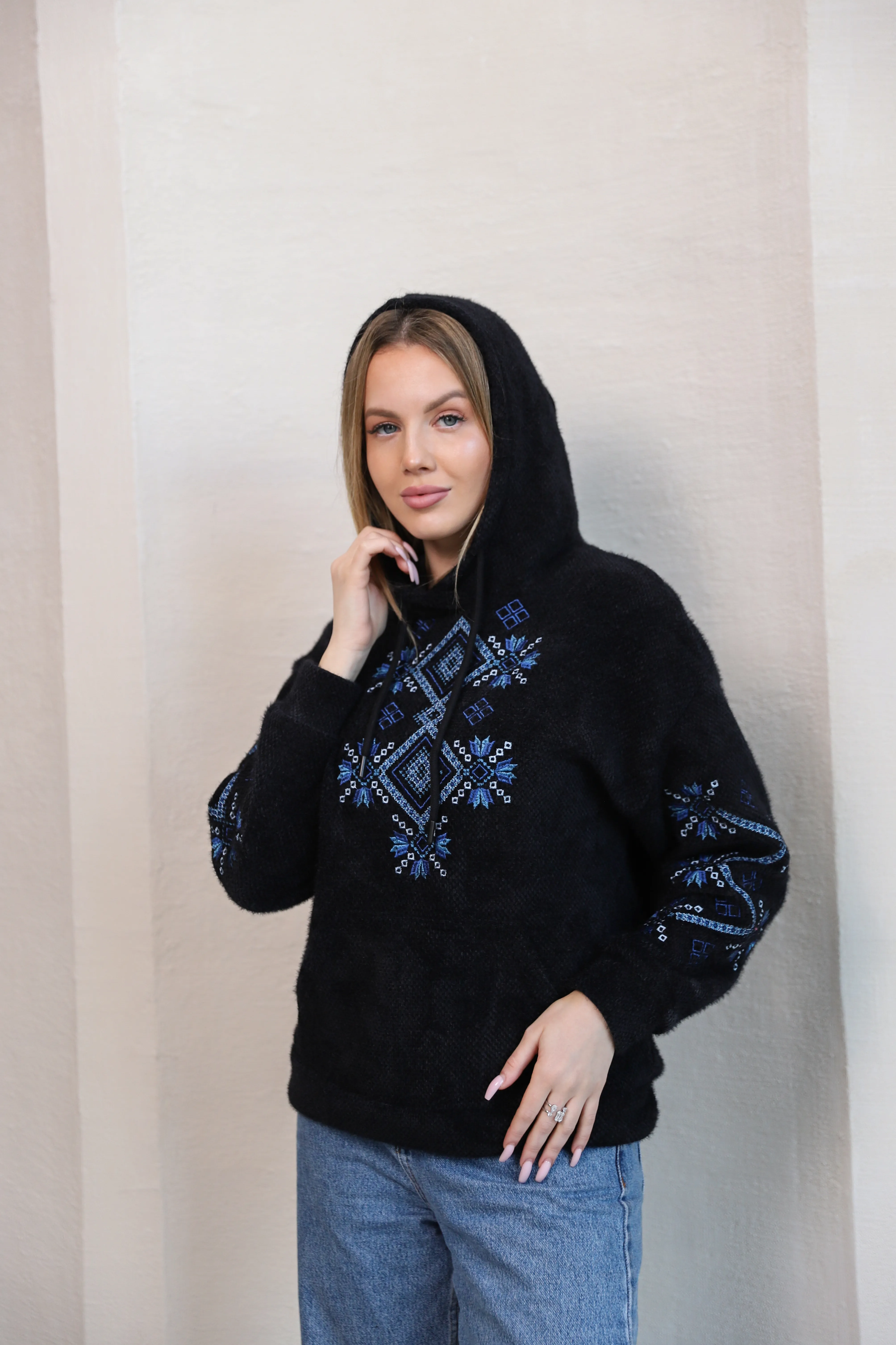 Жіночий світшот з вишивкою Ладомира (чорний)