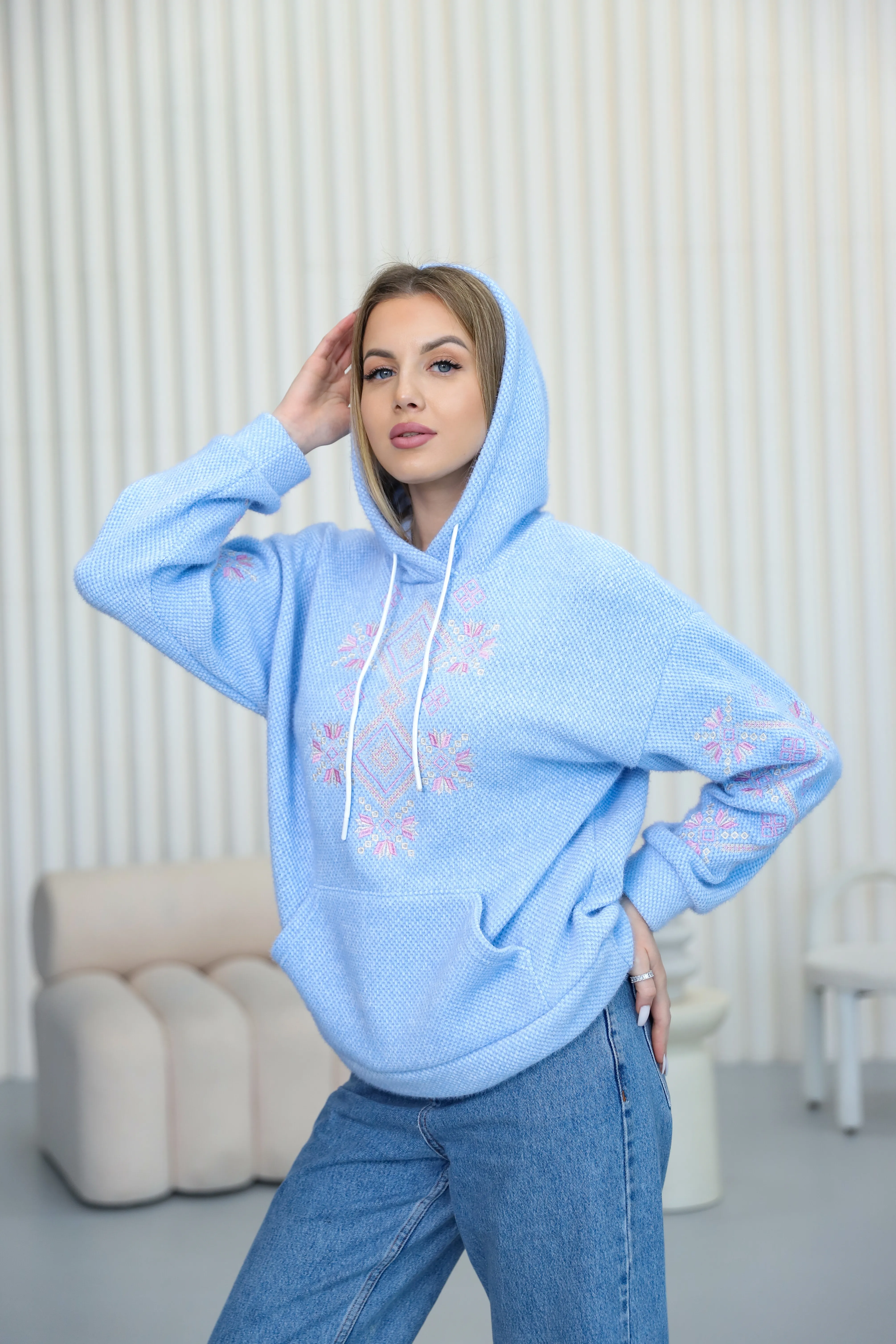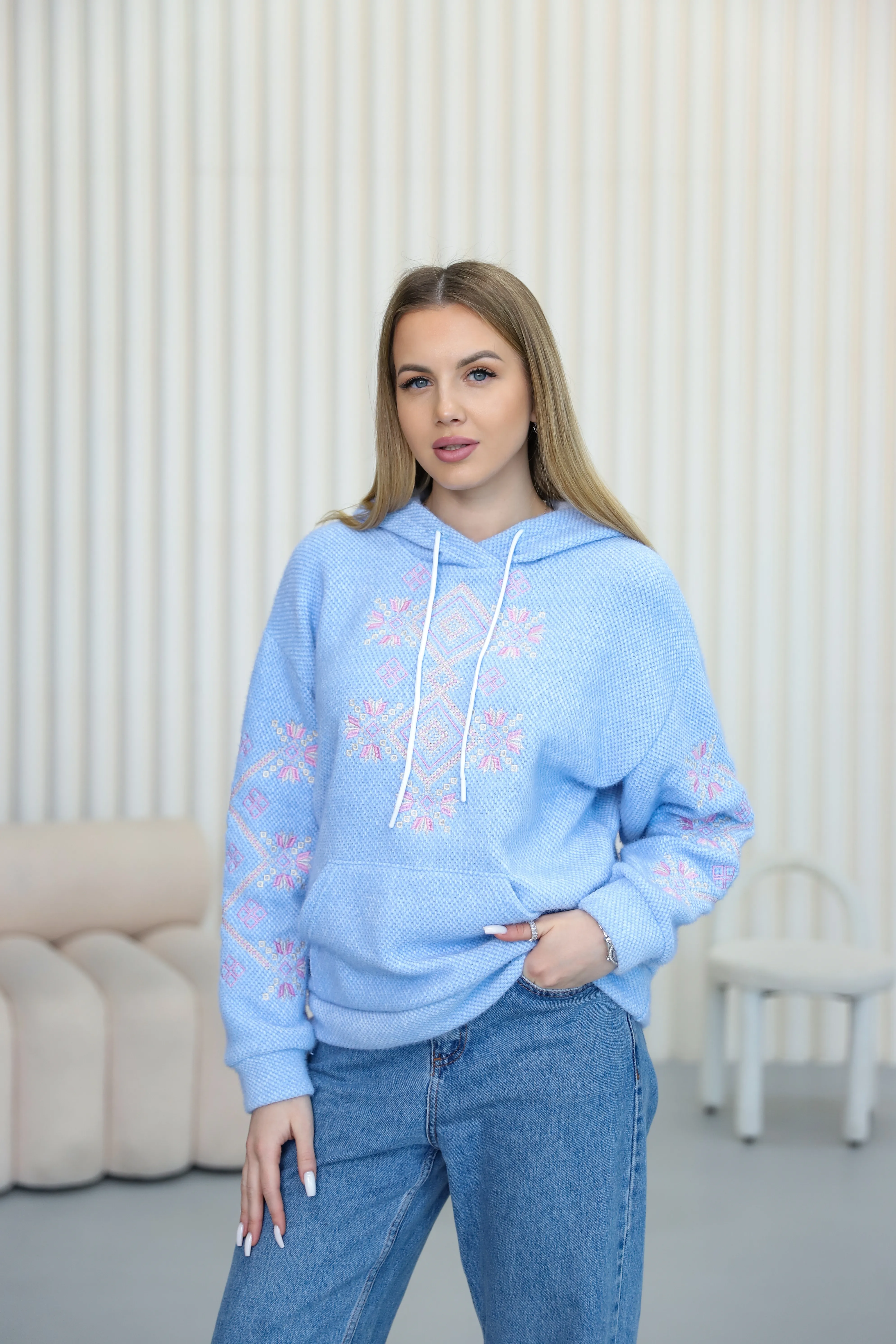 Жіночий світшот з вишивкою Ладомира (голубий)