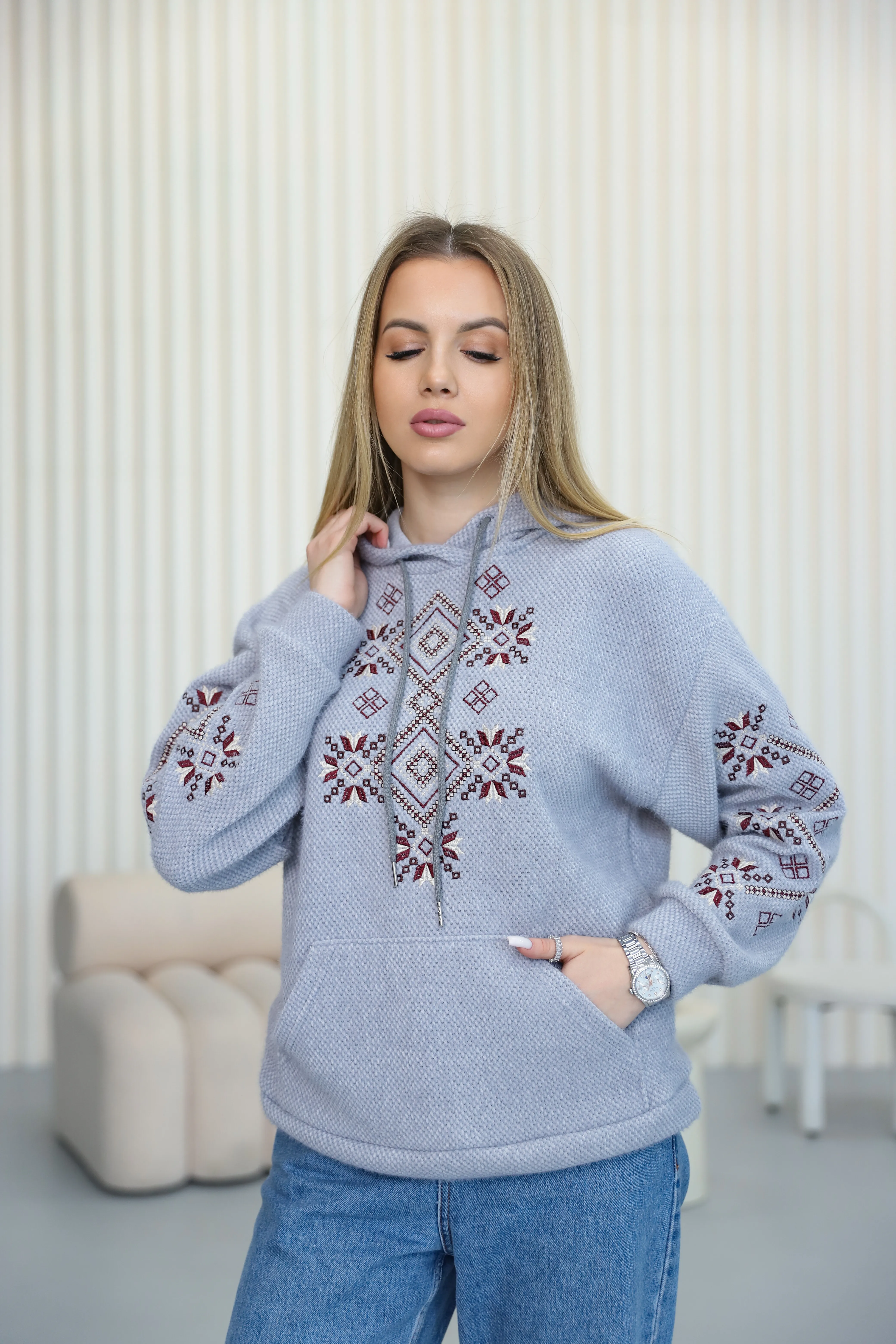 Жіночий світшот з вишивкою Ладомира (сірий)