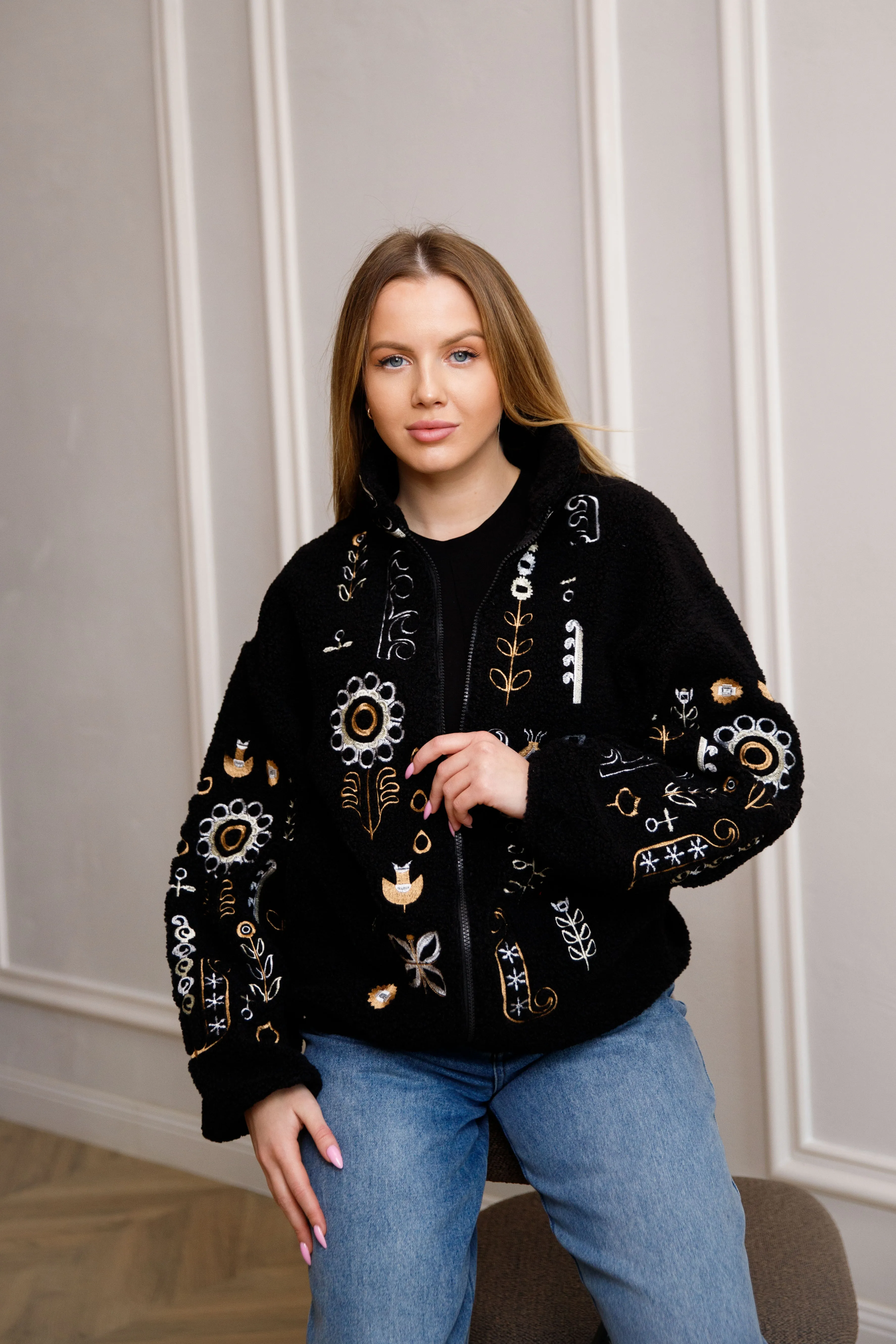 Жіночий світшот з вишивкою Люмінеска (чорна)
