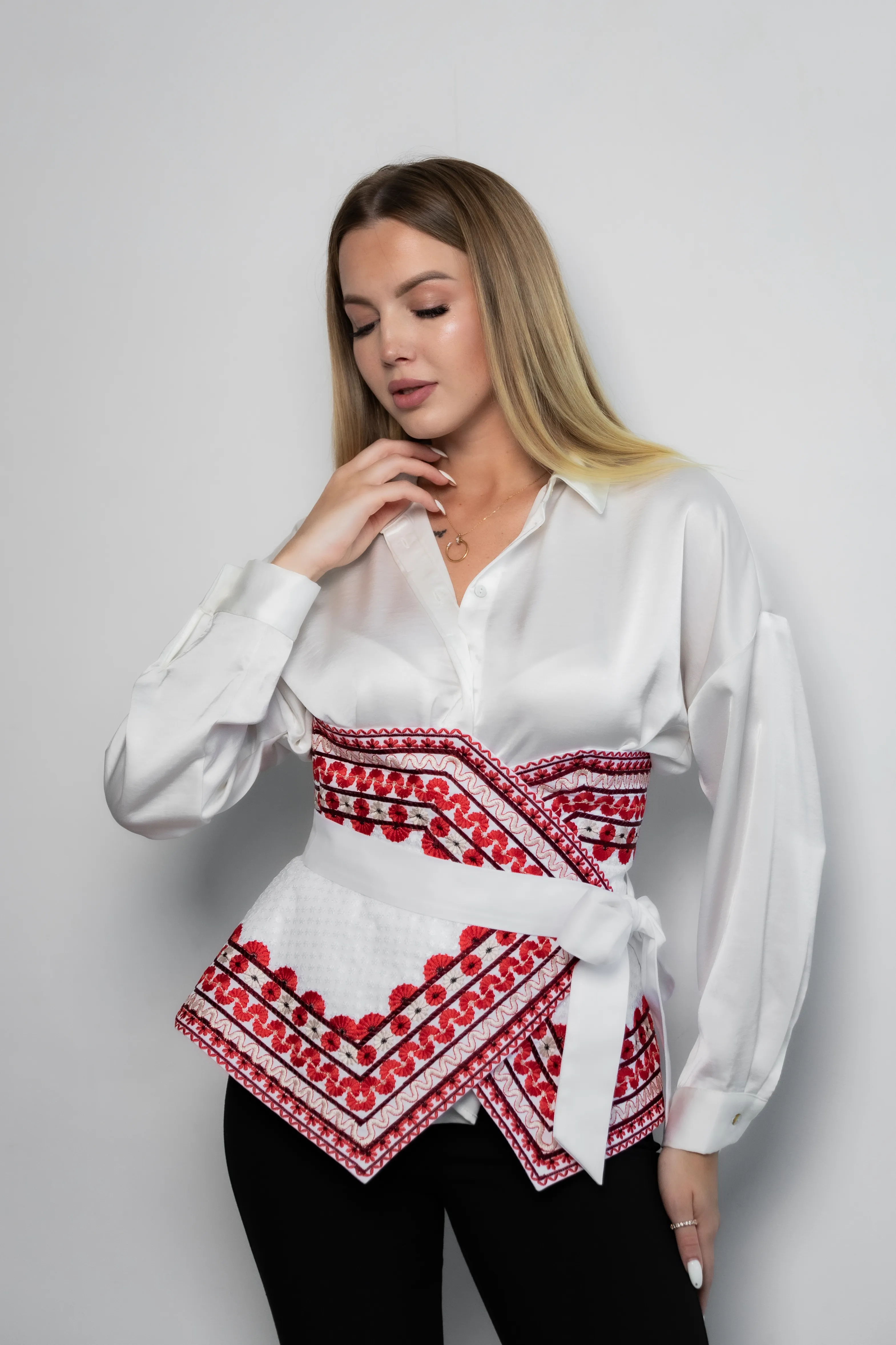 Корсет вишитий корсет Елегантність (біла з червоним)