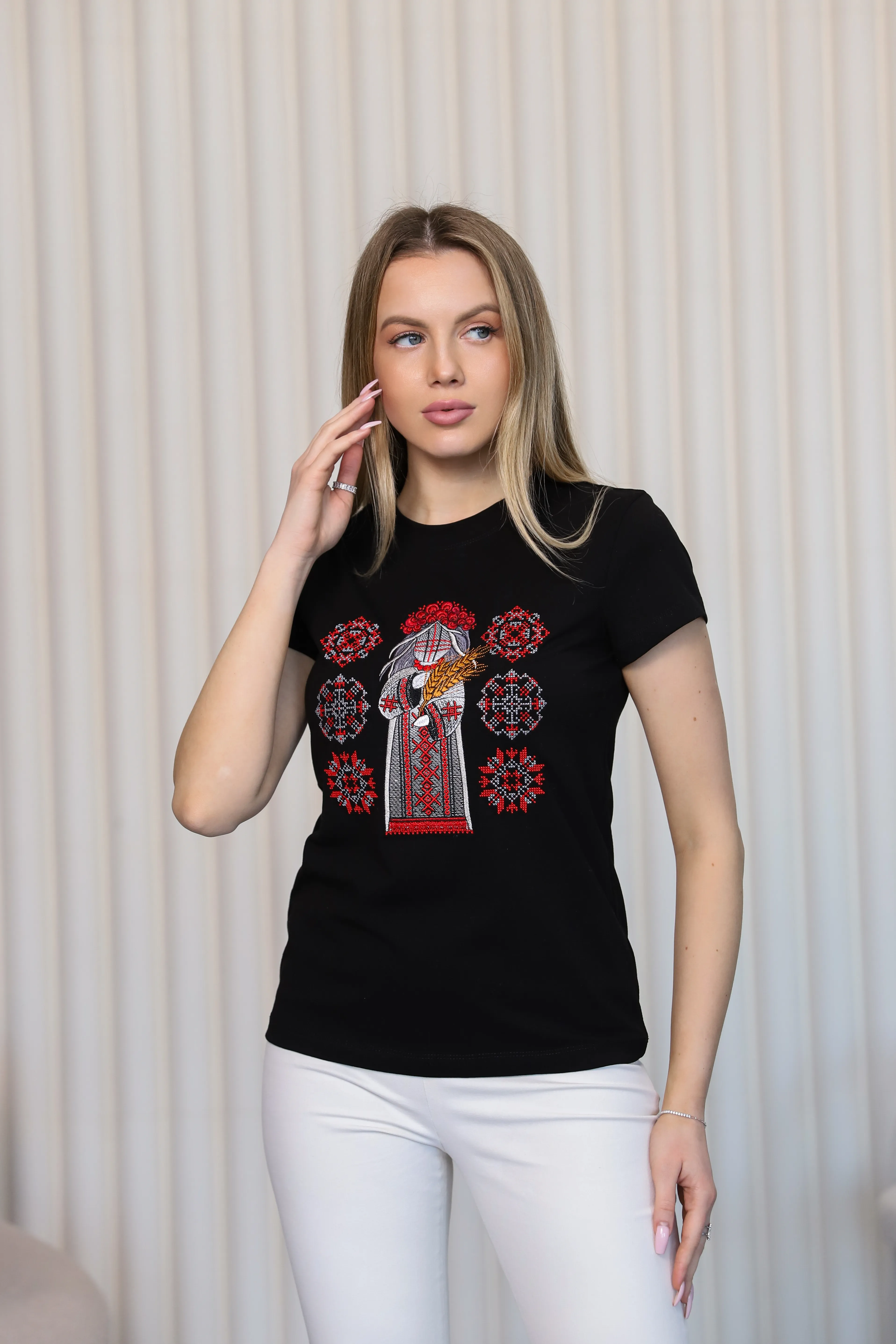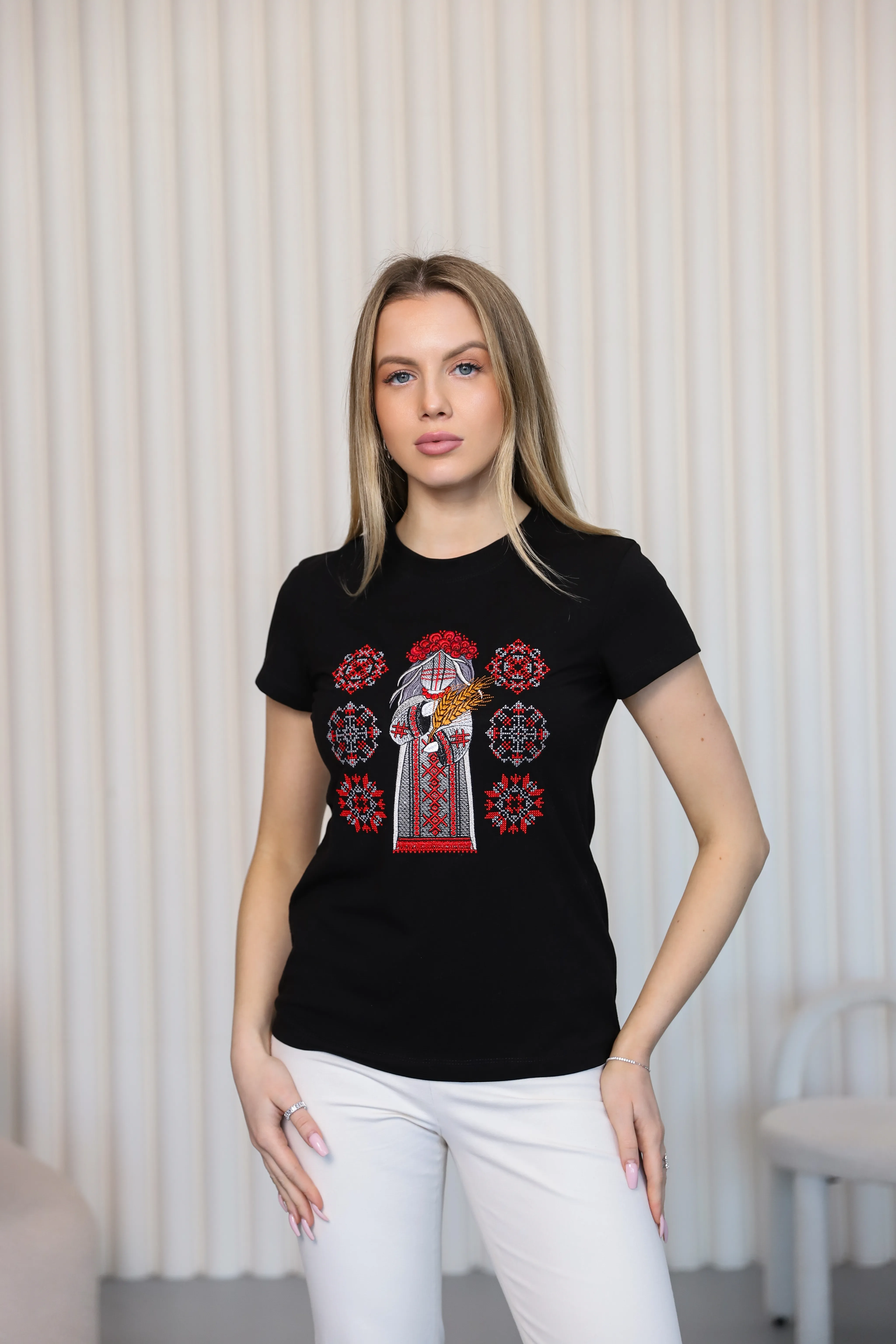 Вишита футболка жіноча Мотанка (чорна)